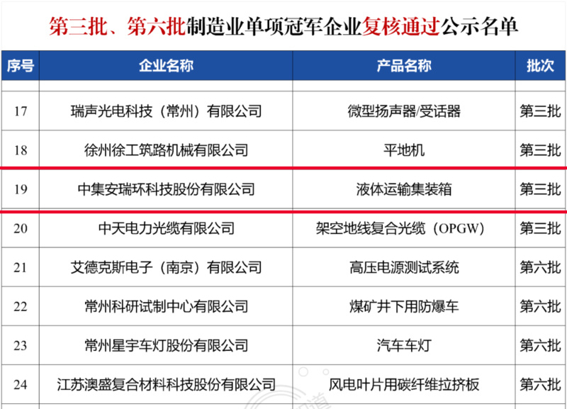 克日,,,,江苏省工信厅公示第九批国家级制造业单项冠军企业及第三批、第六批复核通过名单,,,,尊龙凯时(简称 “尊龙凯时”)依附在液体罐式集装箱领域的一连领跑优势,,,,乐成通过复核,,,,再次连任 “制造业单项冠军树模企业” 称呼。。这一效果不但是对企业恒久专注细分市场的一定,,,,更印证了其在手艺立异、市场竞争力等焦点维度的行业标杆职位。。?